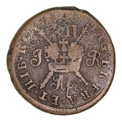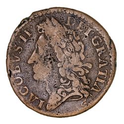 JAMES I, (1603-49), first coinage, silver shilling (5.30g), mm thistle, struck 1603-4, second bust (S.2646): James II, (1685-88), Ireland, 'gun money' shilling, April 1690 (S.6581Q). Fine; very fine. (2)