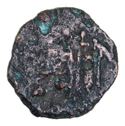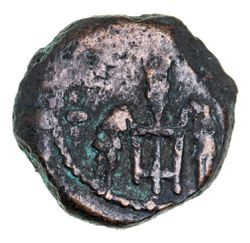 PALESTINE, time of Tiberius, Pontius Pilate, (26-36 AD), copper lepton (1.66g), obv. litus, rev. wreath ...