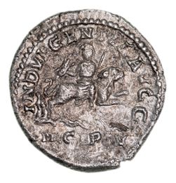 SEPTIMIUS SEVERUS, (A.D. 193-211), silver denarius, Rome Mint, issued A.D. 207, (2.66 g), obv. laureate head of Septimius Severus to right, around SEVERVS PIVS AVG, rev. around P M TR P XVI COS III P P, Genius standing half left holding cornucopiae with patera over altar, (cf.S.6343, RIC 220, RSC 505) (illustrated); another, (3.10 g), rev. Dea Caelestis, holding thunderbolt and sceptre seated facing head right on lion leaping to right, over water which gushes from rock, around INDVLGENTIA AVGG, IN CARTH in exergue, (S.6285, RIC 266, RSC 222) (illustrated); another, (2.87 g), issued 210 A.D., rev. around PM TR P XVIII COS III P P, Salus seated to left feeding serpent held in her lap, (S.6348, RIC 236, RSC 548); another, (2.75 g), issued 207 A.D., rev. VOTA SVSCEPTA XX, emperor standing sacrificing from patera over altar left. (S.6393, RIC 308). Toning, nearly very fine - good very fine. (4)