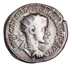 GORDIAN III, (A.D. 238-44), silver antoninianus (3.48g), Rome mint, issued 243-4 AD, obv. radiate and ...