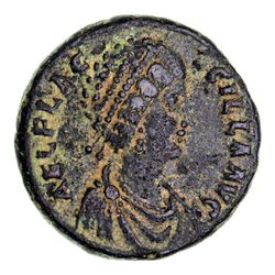 SALONINA, Wife of Gallienus, (A.D. 258), antoninianus, Lyon Mint, (2.59 g), obv. diademed and draped bust right, resting on crescent, around SALONINA AVG, rev. statue of Segetiae or Ceres, nimbate, standing facing in four-columned temple, both hands raised, around DEAE S[EG]ETIAE, (S.10631, RIC 5); Aelia Flaccilla, wife of Theodosius I, (d. A.D.386), AE 2, Antioch Mint, (5.90 g), obv. diademed bust of Aelia Flaccilla to right, around AEL FLAC CILLA AVG, rev. Flacilla standing facing, around SALVS REIPVBLICAE, ANTE in exergue, (S.20616, RIC 61). Toning, nearly very fine - very fine and very scarce. (2)