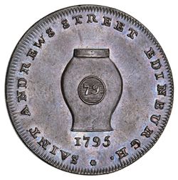EIGHTEENTH CENTURY HALFPENNY TOKENS (41), unofficial farthings (5), pennies (4), nineteenth century pennies (3), Free Museum (Withers 3051); Scotland Angusshire (D&H 5 (penny), 12, 15, 16, 21, 25); Fifeshire (D&H 2); Lanarkshire (D&H 7, 13, 14a, 20, 27, 33, 37, 50a); Perthshire (D&H 1, 5, 10, 11 (farthing)); Ireland, Dublin (D&H 27, 338, 351); Cronebane (D&H 63, 68, 449); Wexford (D&H 3); Wales (D&H 19, 39, 275); North Wales (D&H 12); Carmarthen (D&H 6), all in 2x2 capsules in 2 trays. Fine - extremely fine. (50)