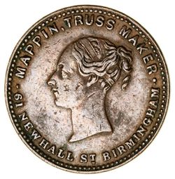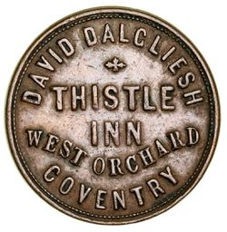UNOFFICIAL FARTHINGS (1820-1901), English issues, Withers numbers, 180 (The Wheat Sheaf, Bath); Yorkshire, Bradford, 1150 (Mary Dunn) RRR; Warwickshire, Coventry, 1470 (N. Charnock); 1480 (Thistle Inn) RR; Kent, Gravesend, 1680 (Tulley's Bazaar); Lancashire, Hulme, 1830 (Flora Gardens); 1840 (White House Hotel) RRR; General Birch, 3370 (W.H. Hutton) RRR; Warwickshire, Stratford upon Avon, 4910 (Mulberry Tree Inn). Very fine or better. (8)