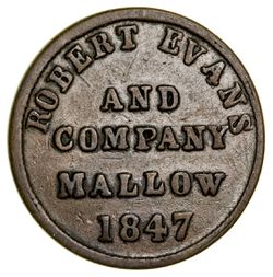 UNOFFICIAL FARTHINGS, Ireland, Co Limerick, Limerick 6530 (John Egan); 6560 (Mont de Piete); 6570 (Revington, Higginson and Co); 6580 (Scarr Brothers) RR; Co Cork, Macron 6630, 40 (James Welpy) (2); Mallow 6650 (Robert Ewans and Co) RR; Co Down, Newtownards 6690 (Bowman); Co Cork, Queenstown (Swanton and Co); Skibbereen 6750b (P. Vickers); Co Kerry, Tralee 6780 (J. Hannahan and Co) RR; 6790 (J. Lumsden and Co); 6800 (Lumsden and Orr and Co); 6810 (M.H. Reardon); Co Waterford, Waterford 6820 (Conway Carleton); 6840 (James Carroll); 6850 (J.W. Delahunty); 6860 (David Holden); 6870 (W. Kirkwood); 6900 (Walsh, Robertson and Co) RR. Very fine or better. (20)