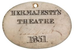 HER MAJESTY'S THEATRE AND OPERA HOUSE, ivory tickets in oval shape (50x38mm), 1840 rev. 'H. ...