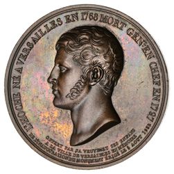 100TH ANNIVERSARY OF DEATH OF WOLFE TONE, 1898, bronze (63mm) by Bender, obv. bust facing left, "HERO OF THE STRUGGLE AGAINST ATROCIOUS BRITISH DESPOTISM", rev. legend, (BHM -); and a French medal, 1832, for monument to General L. Lazare Hoche who led the French army in Ireland and supported Wolfe Tone and the United Irishmen in the rebellion against Britain, bronze (50mm), plain edge original striking. First rare, nearly extremely fine. (2)