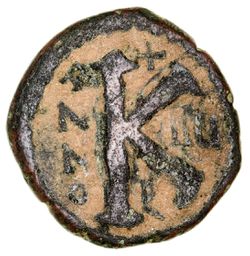 BYZANTINE, bronze issues, Justin I, bronze half follis, (8.59 g), obv. diademed and cuirrassed bust ...