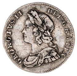 GEORGE II, old head, silver shilling, 1743 roses (S.3702). Attractively toned, nearly extremely fine.