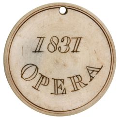KING'S THEATRE, Opera ivory tickets, all round (39mm) 1831, Lady Ridley rev. '1831/Box 102/6'; another ...