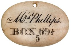 HER MAJESTY'S THEATRE AND OPERA HOUSE, ivory tickets, all oval (50x35mm), 1851 rev. 'J.L. Zulwela Esq./Thursday/Stall 136'; another rev. 'Wm Wells Esq./Tuesday and Thursday/Pitbox R/4'; 1856 rev. 'Mrs. Phillips/Box 69 1/2 /5' (cf Withers 340, 1, 3). Good very fine. (3)