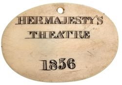 HER MAJESTY'S THEATRE AND OPERA HOUSE, ivory tickets in oval shape (50x38mm), 1840 rev. 'H. ...