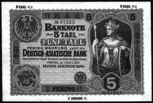 CHINA, Deutsch-Asiatische Bank, five tael, issued note, Peking, dated 1 March 1907, No. 01523, no ...