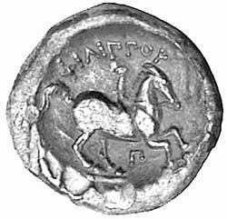 MACEDON, Kingdom of, Philip II (359-336 B.C.), AE 19, Amphipolis mint, (7.5 grams), obv. Apollo head to right with tainia, rev. naked youth on horse, above **FI]LOPPOU, below horse **P*, (S.6698, M.-, Hunterian 134, SNG Cop. 582). Green patina edge flaking, good very fine and rare in this condition.