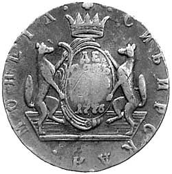 RUSSIA, Siberia, Catherine II (the Great) copper ten kopecks, 1774 KM (KM.6). Three old scratches ...