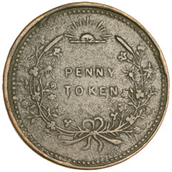 BELL & GARDNER, Rockhampton penny, undated (A.43) by J.C. Thornthwaite. Dark brown patina with some oxidisation, nearly very fine and rare.
