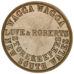 LOVE & ROBERTS, Wagga Wagga penny, 1865 (A.337). Very good/ fair.