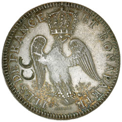 MAURITIUS, Isle de France, silver ten livres, 1810, Napoleon Bonaparte (KM.1). Toned very fine with usual striking weaknesses, countermarked with C C on obverse, rare.
