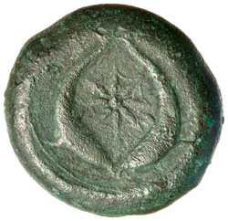 SICILY, Syracuse, period of Timoleon, (344-336 B.C.), AE litra, AE 28, (25.80 grams), obv. head of Athena wearing Corinthian helmet to left bound with olive wreath, to left **[S*YRA], rev. starfish between two dolphins with central pellet, (S.1189, BMC 287, SNG ANS 454-469, Weber 1630). Dark green patina, off centred obverse with ethnic off flan, porous, otherwise about fine and very scarce.