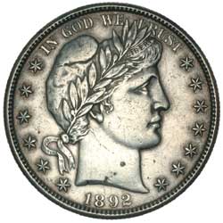 U.S.A., Barber half dollar, 1892S, (KM.116). Toned, extremely fine and rare.