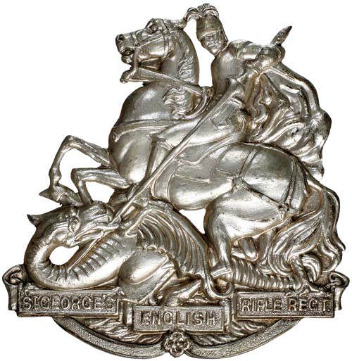 36TH INFANTRY BATTALION (THE ST GEORGE'S ENGLISH RIFLE REGIMENT), 1930-42, hat badge in white metal ...