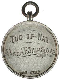 4TH N.Z. Infantry (Res) Brigade, fob medal, uniface, struck in silver (26mm), by V&S (Vaughton & Son, Birmingham), hallmark for Birmingham 1918, ring top suspension, reverse inscribed 'Tug-Of-War/S.Sgt/A.F.Sadgrove'. Extremely fine.