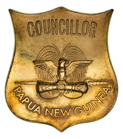 PAPUA NEW GUINEA, Councillor badge, post 1973, in brass (44x48mm), by A.J.Parkes, Brisbane (Mira p205), ...