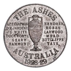 THE ASHES AUSTRALIA, 1928-29, in aluminium (38mm) (C.1928-29/1), by J.R.Gaunt & Son Ltd. Some tone spotting, otherwise very fine.