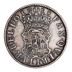 CHARLES II, silver crown, fourth bust, 1679 (S.3359). Toned, nearly very fine.