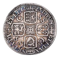 GEORGE I, silver shilling, second bust, 1723 SSC (S.3648). Toned good fine.