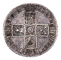 GEORGE II, old head, silver halfcrown, 1745 Lima (S.3695). Toned very fine.