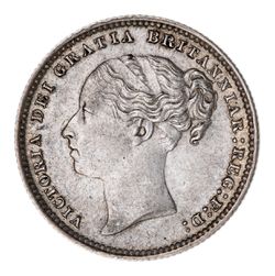 QUEEN VICTORIA, young head silver shilling, 1886 (S.3907) and sixpence 1886 (S.3912). Nearly extremely fine; ...