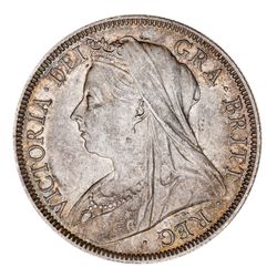 QUEEN VICTORIA, old head, silver crown, 1900 LXIV (S.3937). Lightly toned, nearly extremely fine.