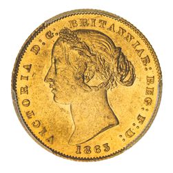 QUEEN VICTORIA, second type, 1863. Surface marks on cheek, original frosty mint bloom, nearly uncircualted/ ...