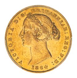 QUEEN VICTORIA, second type, 1864. Minor surface marks, otherwise nearly uncirculated.
