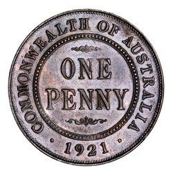 GEORGE V, 1921 Indian die. Glossy brown with hints of red, nearly uncirculated.