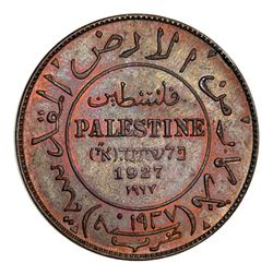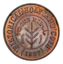 PALESTINE, souvenir Holy Land one mil token, dated as (1927). Red brown, nearly uncirculated.