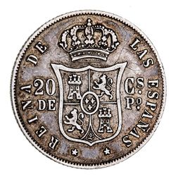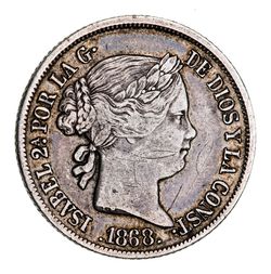 SPAIN, Isabella II, 20 centimos de escudo, 1868 (KM.625); Alfonso XII, 10 centimos, 50 centimos, ...