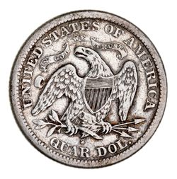 USA, LIBERTY SEATED SILVER QUARTER 1866S. Gouge mark at feet otherwise nearly very fine and ...