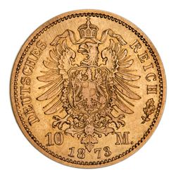 GERMANY, Prussia, Wilhelm I, ten mark, 1873A(KM.502). Nearly extremely fine.