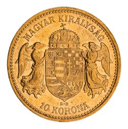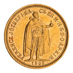 HUNGARY, Franz Joseph, ten Korona, 1905KB (KM.485). Scratches otherwise good extremely fine.