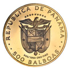 PANAMA, Republic, proof five hundred balboas, 1975(KM.42). In case of issue with certificate, FDC.