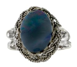 LADY'S OPAL RING, oval cabochon opal bezel set with 4 arms in a filigree basket, ...