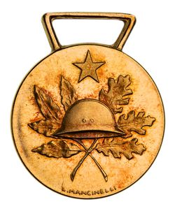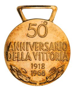 ITALY, 50th Victory Anniversary 1918-1968, miniature medal (19mm), by L.Mancinelli, in 18ct gold (5.2g). No ...