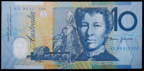 TEN DOLLARS, Fraser/Evans (1993) (R.316aL) last year prefix, blue dobell, KE 935 17320. Uncirculated.