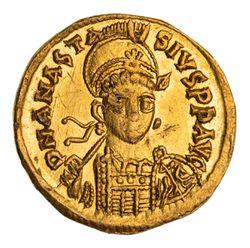 ANASTASIUS I, (491-518 AD), gold solidus (4.42g), Constantinople Mint, issued 507-18, obv. helmeted and cuirassed ...