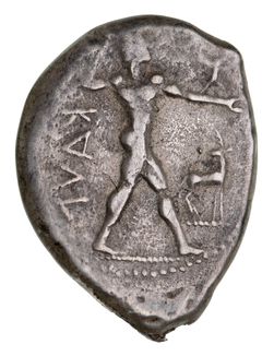 ITALY, Bruttium, Kaulonia, silver stater, 460-450 B.C. (Kraay chronology), (7.02 g), obv. Apollo naked walking ...