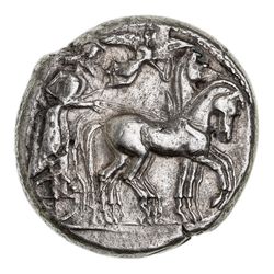 SICILY, Syracuse, (c.450-440 B.C.), silver tetradrachm, (17.12 g), obv. slow quadriga driven to right by ...