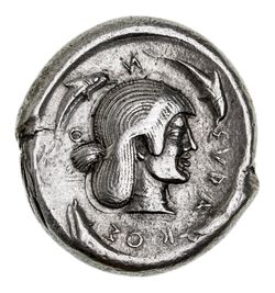 SICILY, Syracuse, Deinomenid Tyranny, (c.485-466 B.C.), silver tetradrachm, (18.35 g), struck under Gelon, c.478-475 B.C., obv. quadriga driven to right by bearded male charioteer, Nike flying right crowning horses, rev. **SUPAKOSION* around, head of Arethusa to right, hair slightly waved and turned up behind under diadem of beads, four dolphins around, (cf.S.913, Boehringer series IXa-X, - [unlisted dies], HGC 2, 1306). Lightly toned, slightly double struck, well centred, good very fine and very rare with unpublished dies.