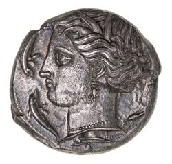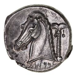 SICULO-PUNIC, mint of the camp, (c.320-310 B.C.), silver tetradrachm, (17.16 g), obv. wreathed head of ...