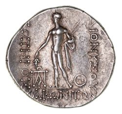 THRACE, Maroneia, (late 2nd century B.C.), silver tetradrachm, (16.13 g), obv. head of young Dionysos to right, wreathed with ivy, rev. Dionysos naked standing left, holding grapes and two narthex wands, monograms to left and right, around **DIONUSOU SWTHROS MARWNITWN*, (S.1635, Schonert-Geiss 1115-7/1120 [obv. 34, rev.130], ACNAC Dewing 1295, BMC 59 [p.128]). Very large flan, good very fine, rare.
